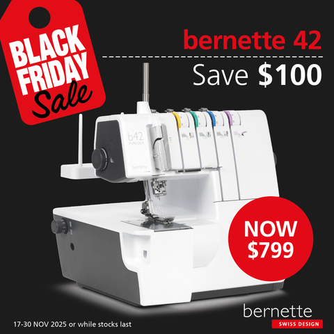 The bernette Funlock 42 is a coverstitch machine featuring a total of 3 different coverstitches with a width of 2.8 and 5.6 mm and a chain stitch. With it, you can provide your hems, edges and cuffs with professional stitches, giving your sewing project the perfect look. Excellent results can be achieved with the bernette Funlock 42, even with very stretchy fabrics and thin knitted fabrics. Threading the needles and loopers is also really easy, thanks to the separate needle threader and the looper threading mechanism. And to give you a good view of your sewing project, the bernette Funlock 42 also has a bright LED light.